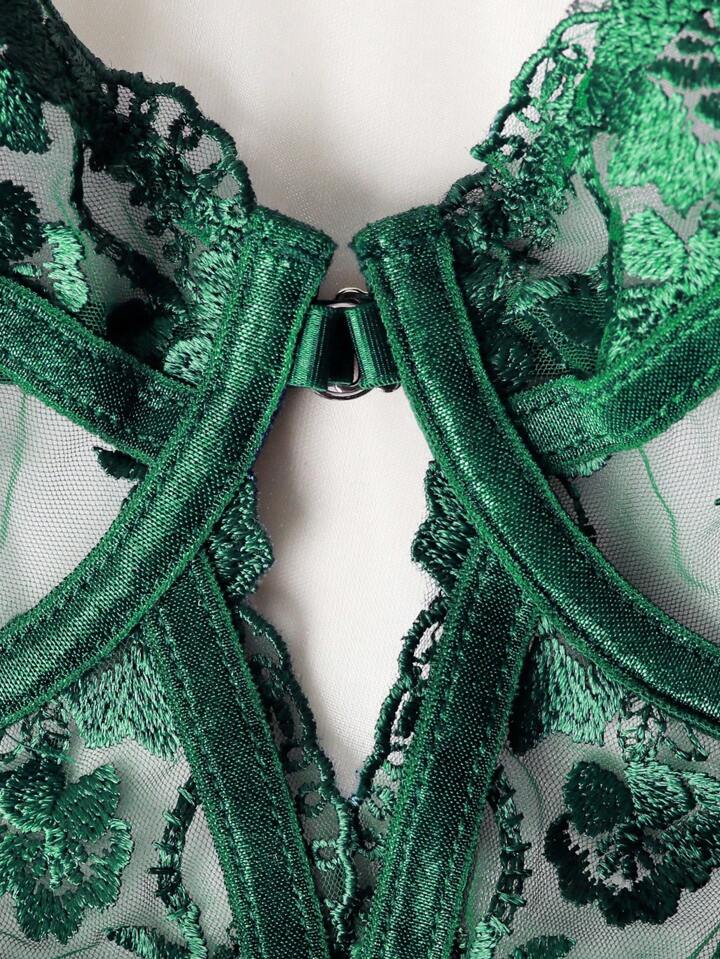 Evangeline Lace Garter Bodysuit | Green