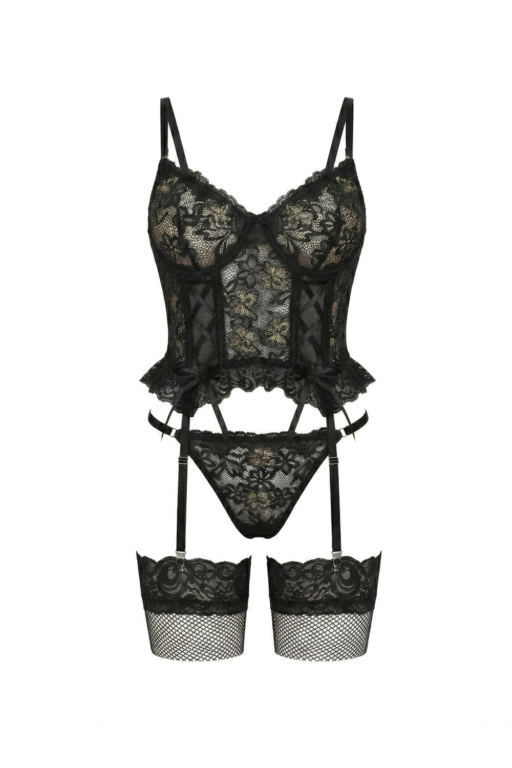 Lace Corset Lingerie Set | Black