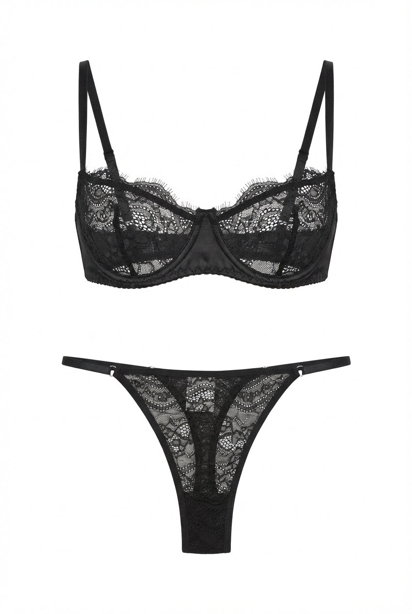 Meet the Ella Lace Sheer Lingerie Set, a seductive two-piece designed to elevate every intimate moment. Crafted in timeless black, this sexy set blends sheer contrast mesh with delicate floral lace to create a look that is both classic and irresistibly bold.