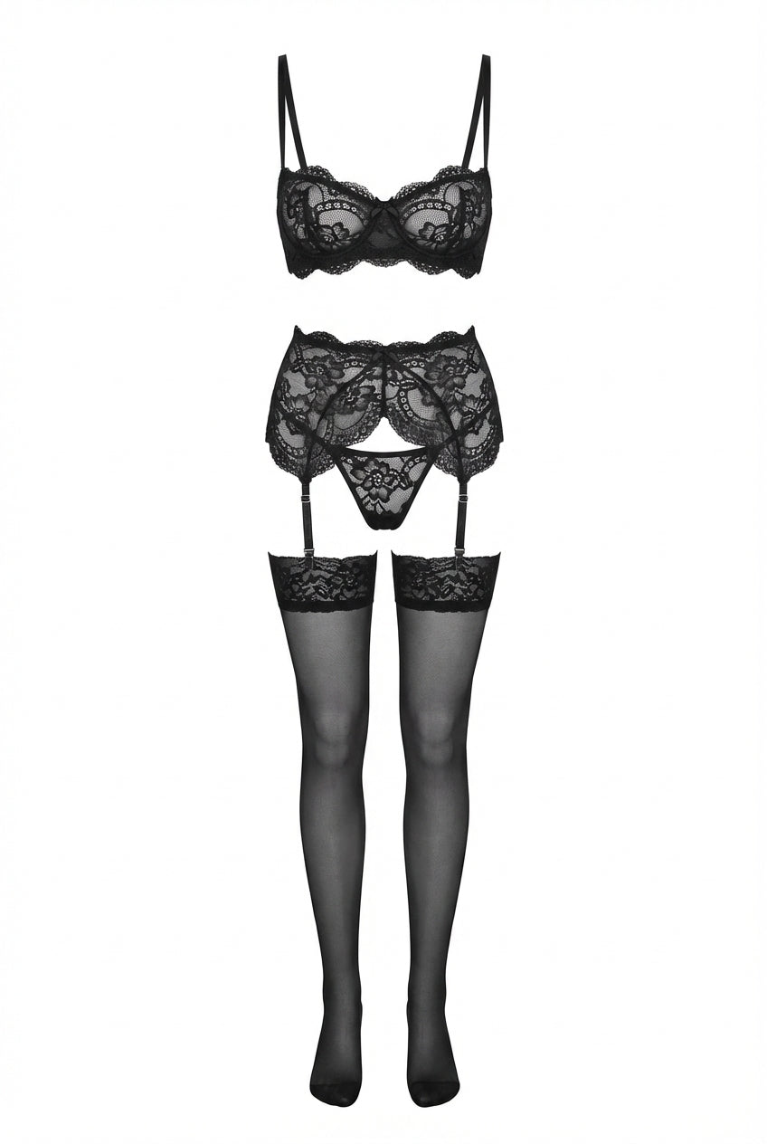 Victoria Lace Elegance Lingerie Set | Black - S is backordered and will ship as soon as it is back in stock.